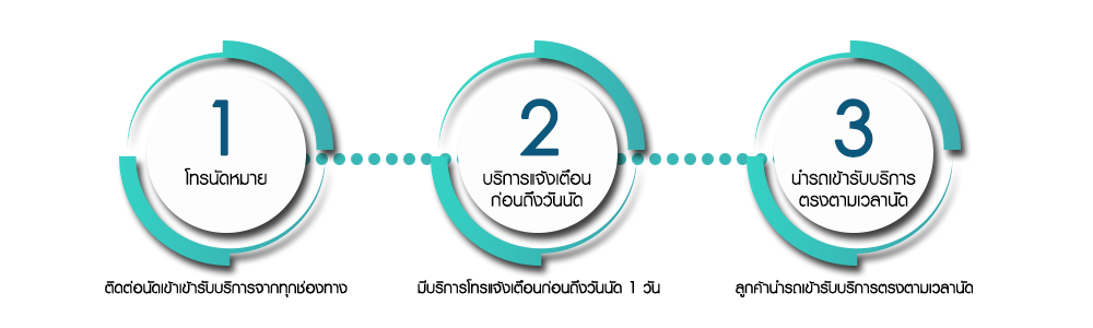 หมดปัญหากับการเสียเวลารอคิวนาน ด้วยบริการนัดหมายล่วงหน้า บริการที่ดีและสะดวกรวดเร็ว ที่จะทำให้ท่านเข้ารับบริการได้ทันที เพียงแค่โทรนัดหมายล่วงหน้าอย่างน้อย 1 วัน และหากท่านไม่สะดวกที่จะมาตามเวลานัด ท่านยังสามารถเปลี่ยนแปลงวันและเวลาเข้ารับบริการได้แบบไม่ต้องกังวล โดยสามารถโทรนัดหมายได้ที่เบอร์ 02-975-8833 กด 1