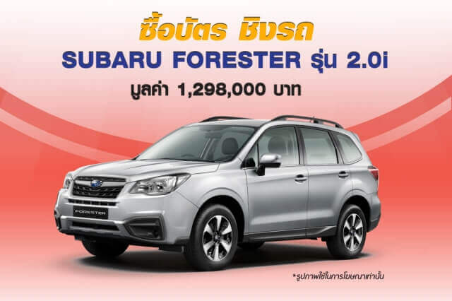 ผู้ชมงานที่ซื้อบัตรเข้าชมงาน มูลค่า 100 บาท จะได้รับคูปองสำหรับกรอกข้อมูล เพื่อชิงโชคในรายการ ซื้อบัตร ชิงรถ ซูบารู ฟอเรสเตอร์ รุ่น 2.0 ไอ มูลค่า 1,298,000 บาท