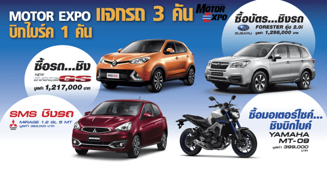 ผู้ชมงานที่จอง/ซื้อรถยนต์ในงาน จะได้สิทธิ์ชิงรถยนต์ เอมจี จีเอส 2.0 ที 2 ดับเบิลยูดี มูลค่า 1,217,000 บาท