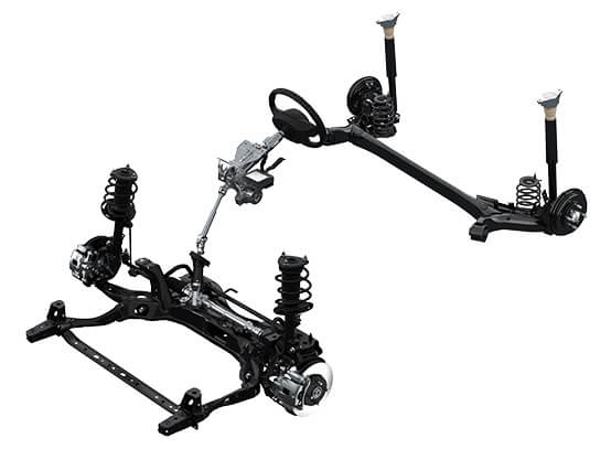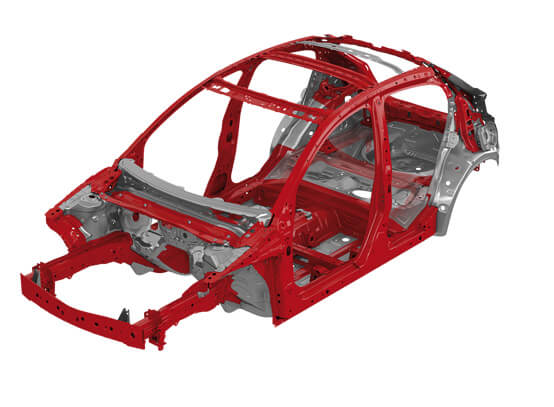 ใช้เหล็กกล้าทนแรงดึงสูง (High Tensile Steel) พร้อมโครงสร้างที่มีแนวรับแรงหลายทิศทาง ช่วยลดแรงสะเทือนจากถนน และกระจายแรงปะทะที่เข้าสู่ห้องโดยสารในกรณีเกิดอุบัติเหตุ