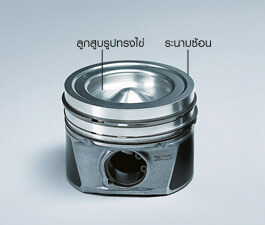 ออกแบบเพื่อจ่ายน้ำมันในกระบอกสูบให้ทั่วถึงที่สุด พร้อม Step การออกแบบให้มีระนาบซ้อน ที่ช่วยให้ลดการสูญเสียความร้อนจากการเผาไหม้ให้น้ำมันถูกใช้อย่างมีประสิทธิภาพสูงสุด