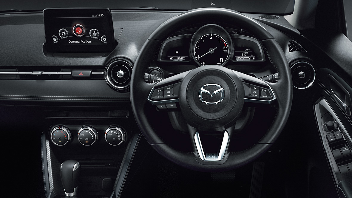 Center Commander ปุ่มหมุนที่คอนโซลกลางตรงตำแหน่งใกล้มือผู้ขับ ที่ใช้ควบคุม MZD CONNECT เพียงหมุนหาคำสั่งที่ปรากฏขึ้นบนจอ Center Display ใช้ได้ทั้งขณะรถวิ่งหรือรถจอดนิ่ง ให้ผู้ขับใช้สมาธิกับการขับขี่ได้ดียิ่งขึ้น