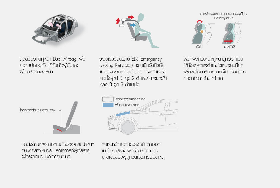 **หมายเหตุ : อุปกรณ์มาตรฐานแตกต่างกันในแต่ละรุ่น ให้อ้างอิงข้อมูลจำเพราะทางเทคนิคและอุปกรณ์มาตรฐาน *เมื่อใช้งานร่วมกับระบบประหยัดน้ำมัน i-Stop