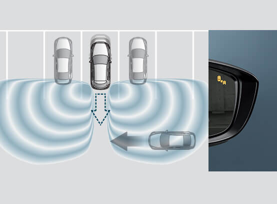 ระบบเตือนเมื่อมีรถในจุดอับสายตาขณะถอยหลัง จะส่งสัญญาณเตือน พร้อมไฟกะพริบเตือนที่กระจกมองข้าง หากตรวจพบความเสี่ยงที่อาจทำให้เกิดอุบัติเหตุจากรถที่ขับผ่านมาด้านหลัง