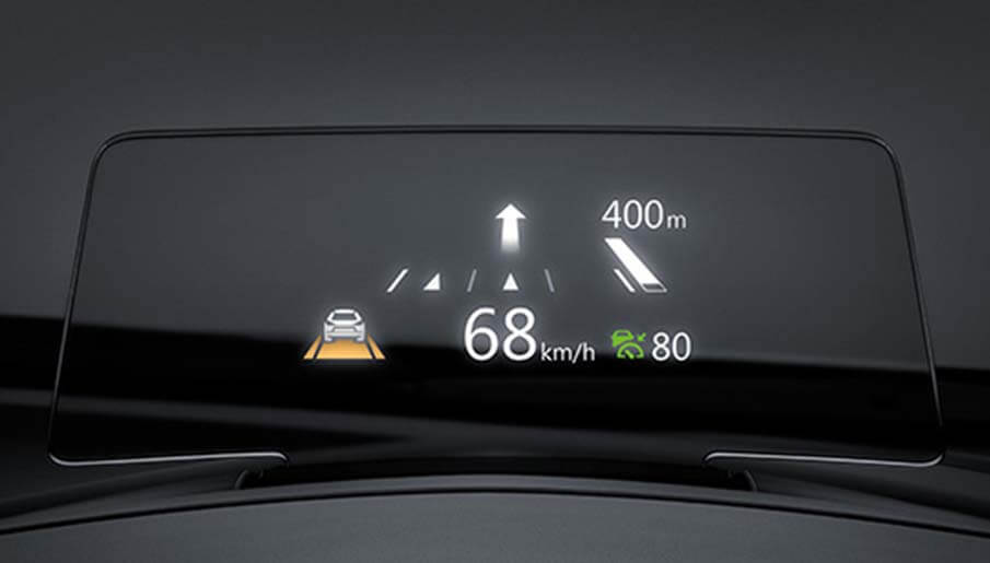จอแสดงข้อมูลการขับขี่ อ่านง่ายในระดับสายตา โดยผู้ขับไม่ต้องละสายตาจากถนน