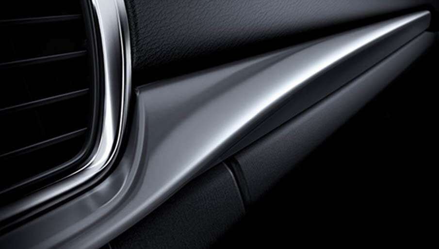 แผงอุปกรณ์และแผงประตู ประดับด้วยวัสดุสีเงิน สลับกับสีดำวาว พร้อมจัดวางอุปกรณ์ภายใน เพื่อเพิ่มพื้นที่ในการใช้งานได้มากขึ้น