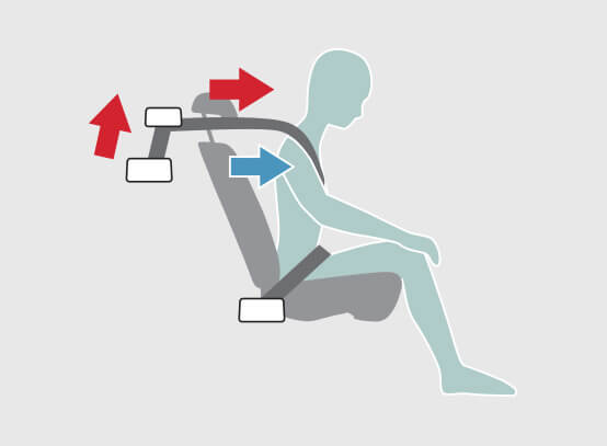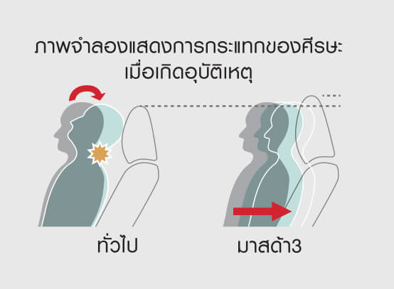 Headrest ออกแบบให้มีองศาและตำแหน่งเหมาะสมที่สุดเพื่อลดโอกาสบาดเจ็บ เมื่อเกิดอุบัติเหตุ