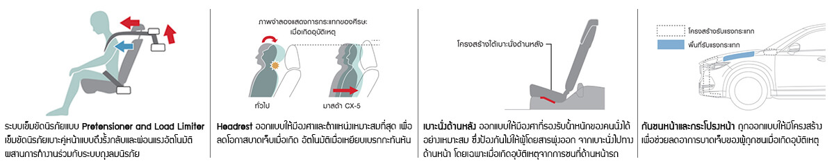 มาสด้า ซีเอ็กซ์-5 ใหม่ เพิ่มอีกระดับของความปลอดภัย กับเทคโนโลยีเพื่อความปลอดภัยสุดล้ำ i-ACTIVSENSE ที่สามารถคาดการณ์อย่างแม่นยำและส่งสัญญาณเตือนผู้ขับขี่ให้เพิ่มความระมัดระวังยิ่งขึ้น เพื่อป้องกันและลดความเสี่ยงการเกิดอุบัติเหตุได้รอบคัน
