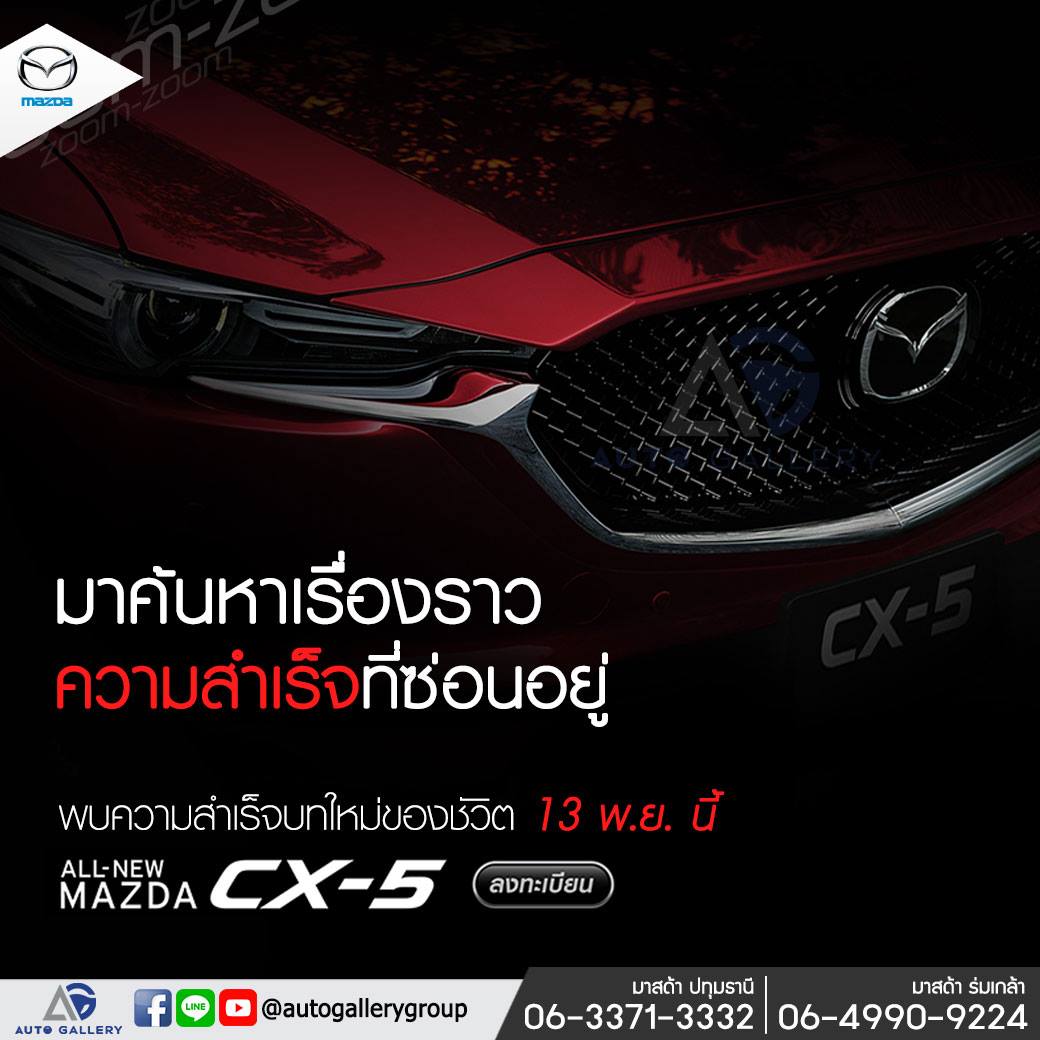 ลงทะเบียนเพื่อรับสิทธิพิเศษ เพื่อร่วมค้นหาเรื่องราวความสำเร็จที่ซ่อนอยู่ ใน ALL-NEW MAZDA CX-5 ได้ก่อนใคร!