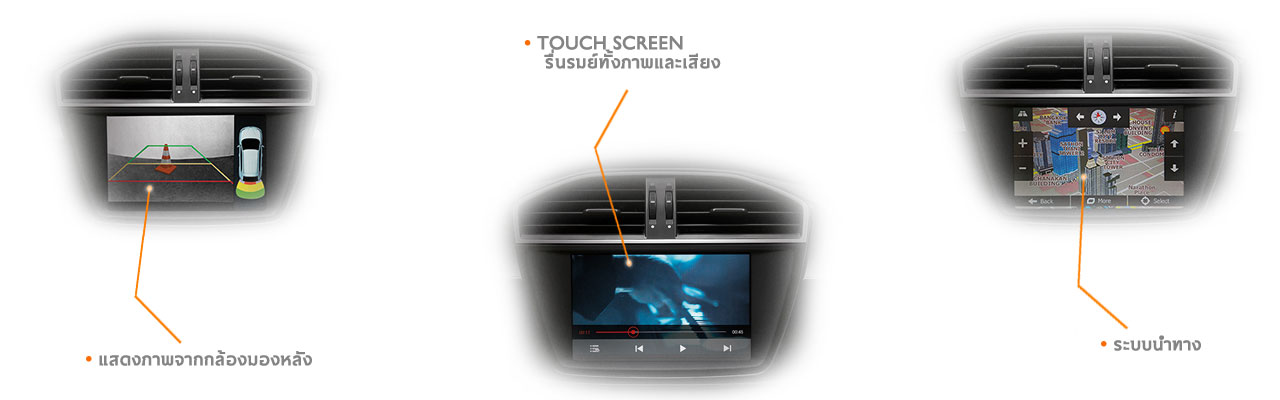 รื่นรมย์ทั้งภาพและเสียงด้วยหน้าจอ Touch Screen ให้คุณได้สัมผัสความรู้สึกเต็มอิ่ม สบายยิ่งขึ้น ด้วยเบาะหลังที่สามารถ