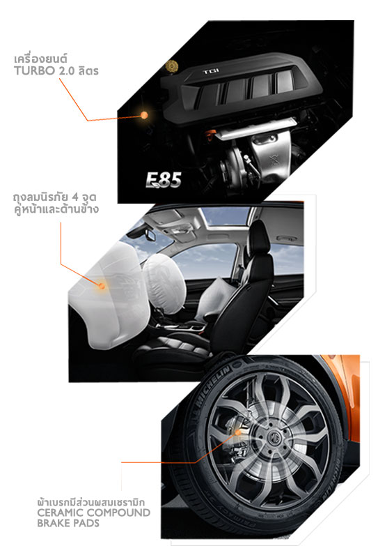 ที่สุดแห่งพลังขับเคลื่นที่ไม่มีใครตามทัน ล้ำหน้าในแบบที่ไม่เคยมีในรถ SUV ระดับเดียวกันมาก่อน ด้วยเครื่องยนต์ Turbo 2.0 ลิตร ให้พลังถึง 218 แรงม้า ที่ 5,300 รอบต่อนาที และแรงบิดสูงสุด 350 นิวตันเมตร ที่ 2,500-4,000 รอบต่อนาท สามารถรองรับน้ำมัน E85